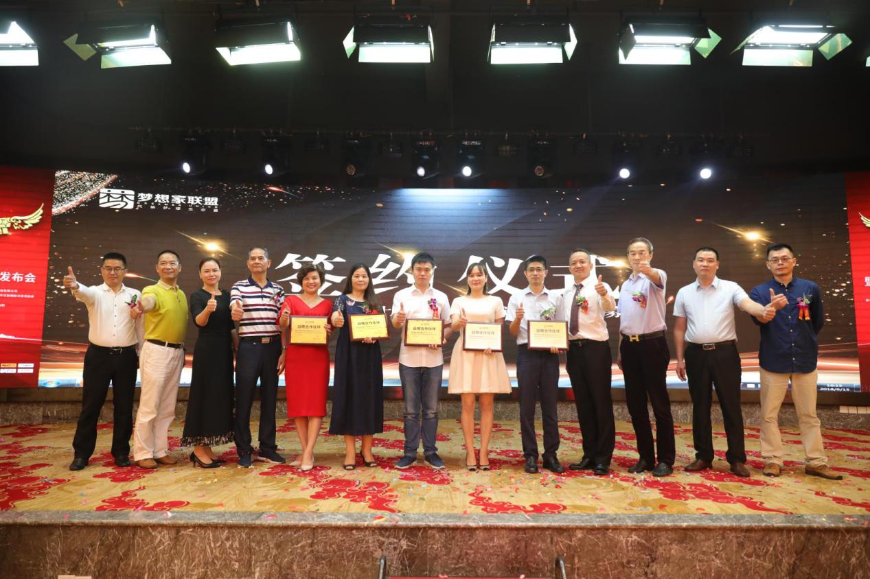 在接下来的授牌仪式中,梦想家联盟分别同深圳市沃尔核材股份有限公司、汇天控股智汇牛科技有限公司、深圳云智方科技、佳得宝家居、善之泉环保科技签订了战略合作协议并授牌。
