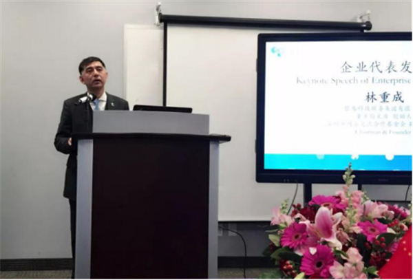 ▲深圳中小企联会长、基金会荣誉副会长、银盛集团董事局主席林重成演讲