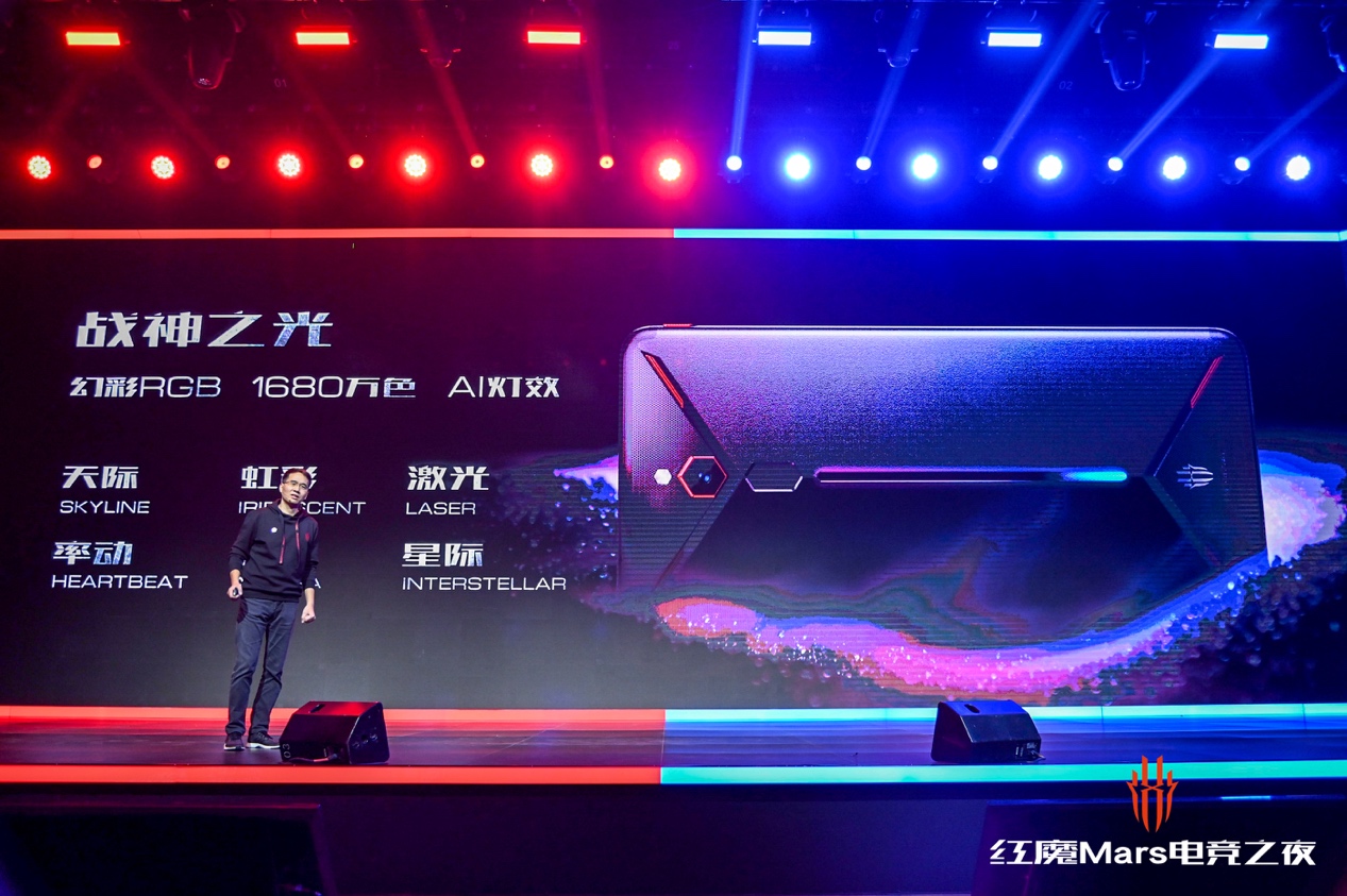 其次,在努比亚看来,优秀的视觉效果对于“电竞手机”也不可或缺。红魔Mars正面配备了一块时下难得的6英寸LCD全面屏,同时兼顾了高亮度、高分辨率和护眼显示的综合优势。而在机身背部,1680万色的AI灯带配合专业的光效控制器APP,也带来了专业游戏装备所独有的竞技视效气氛。