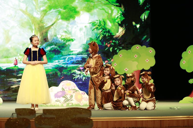 现场表演精彩纷呈,内容积极向上,形式丰富多彩,表演生动逼真,充分展示出选手们奋发向上的精神风貌,同时也展现了选手们的外语实际运用能力和自主创新精神。《三打白骨精》、《睡美人》、《冰河世纪》、《狮子王》、《皇帝的新装》、《白雪公主和七个小矮人》、《小红帽》、《马良的神笔》……一个个经典的童话故事,惟妙惟肖的表演,生动的诠释着故事里的每一个角色,把观众带入一个个美丽的童话世界。