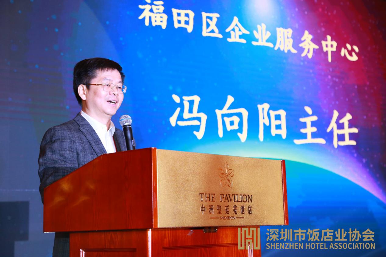 深圳市福田区企业服务中心冯向阳主任对论坛的顺利开幕表示祝贺,他认为,饭店业是一个古老的朝阳产业,也是一个跨界融合的产业,“饭店业+”有着无穷的可塑性和创造性,引领着人们对体验美好生活的需求;籍着大湾区、粤港区的重要契机,未来10年将是福田区酒店业的发展黄金区,深圳市饭店业协会进驻福田区属高瞻远瞩。他指出,本届论坛是一场及时雨,对酒店企业来说更是一门公需课和必修课,预计将为福田区的经济发展注入了新力量;各企业的发展必须准确定位,与时俱进,要在创新上出成果,要在整合上下功夫,要在社会上有回馈。
