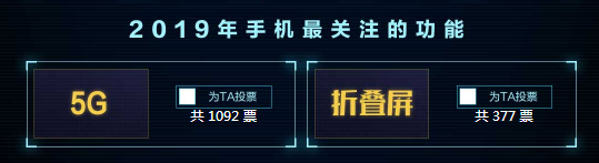 最后,在2019年手机最关注的功能评选中,苏宁易购选出了5G和折叠屏两个方向供用户选择,这两大功能正是今年热议的智能手机两大方向。目前在用户投票评选中,5G功能明显更受关注,其关注度是折叠屏的两倍以上,这也从一定程度上说明,5G手机的应用需求比折叠屏更加强烈。