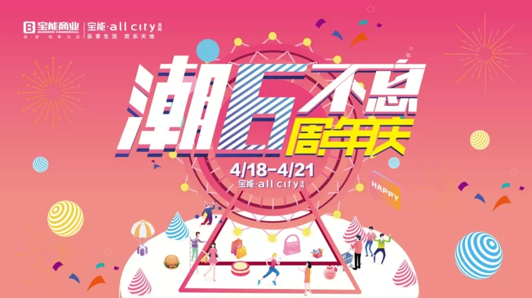 据悉,为回馈顾客多年来的支持,4月18日-21日期间,龙岗宝能·all city举行了六周年庆系列主题活动,10000份礼品免费送、拼手气抽华为P30Pro及小米酷炫卡丁车套件等好礼、万元现金红包雨准点抢、大众点评/美团30团50元代金券、餐饮5折起,零售3折起等,更有超多免费大礼送给市民朋友。同期,商场还联合宝马mini车友会打造的后尾箱市集受到顾客的喜爱。项目还倾力打造浪漫摩天轮、甜蜜花路、马卡龙色棒棒糖等网红拍照场景,得到闻讯而来市民的一致好评,有市民表示,在这些场景前拍照,让自己成为了朋友圈的“吸睛王”。丰富的活动也极大带动了销售,较去年同期增长超20%。整个周年庆活动在“潮6不息”生日庆典中迎来了高潮。