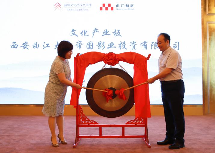 会上深圳文交所与曲江新区管委会签署战略合作及业务合作协议,5家挂牌企业分别是西安曲江大秦帝国影业投资有限公司、西安文化科技创业城股份有限公司、西安曲江国际会展(集团 )有限公司、西安曲江影视投资 (集团 )有限公司、西安曲江出版传媒投资集团有限公司并且现场鸣锣,成功挂牌“文化产业板”。