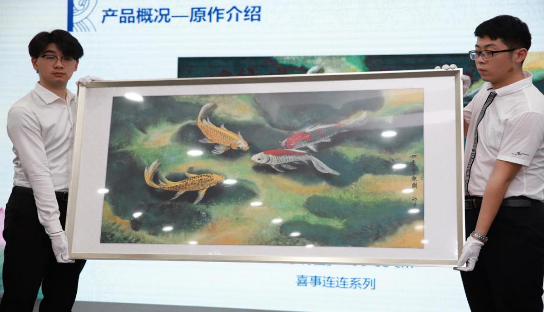 活动现场还展示了这三幅版画产品的样品——《喜事连连》、《四季有鱼》、《观音宝像》,该产品具有三大亮点:(一)艺术价值高;(二)投资潜力大;(三)稀缺性强。
