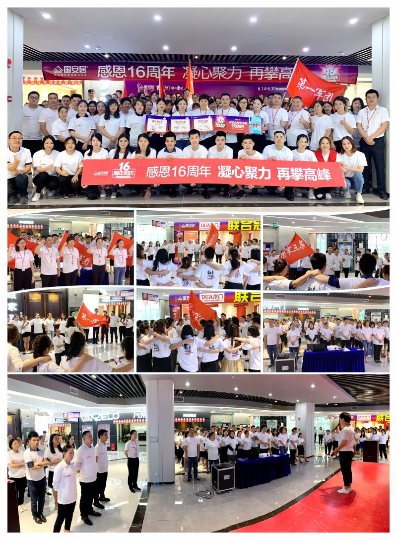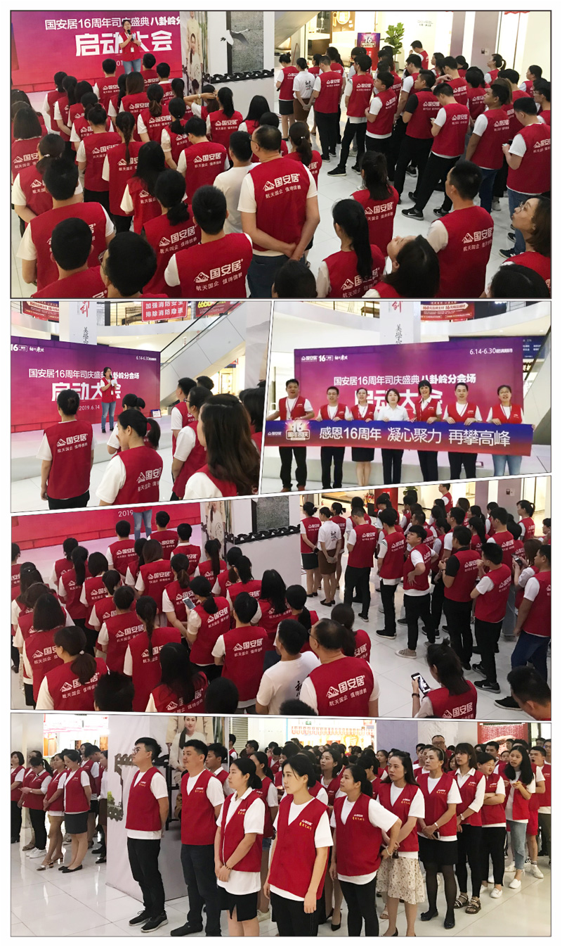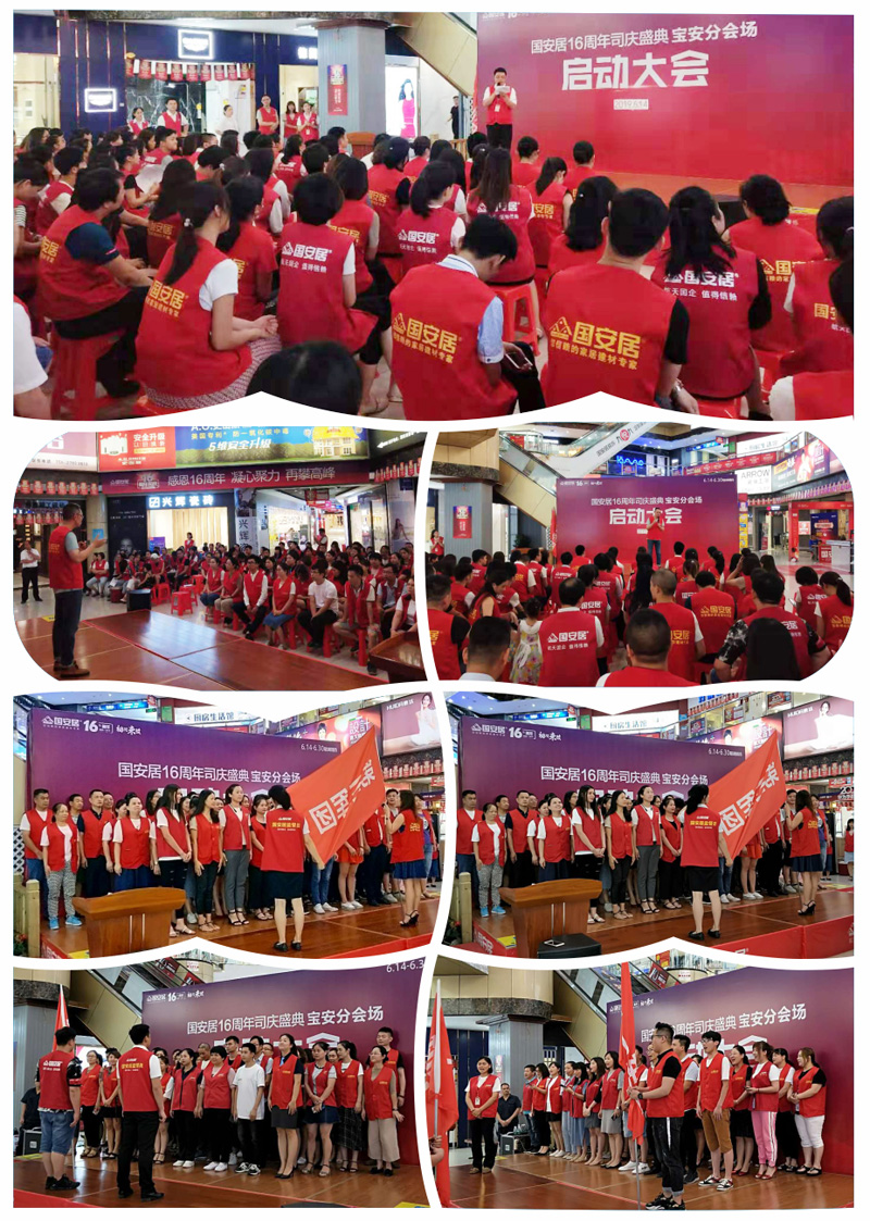 6月13日-14日,国安居“16周年司庆”启动大会在国安居深惠门店火热举行,800家品牌商家的销售精英、员工代表、热心市民等近万余人共同见证了这一意义非凡的时刻。参与者身着统一服装,早早就聚集在商场中庭,所有人都把笑容挂在脸上,展现出自己最阳光、最开心、最具活力的一面。