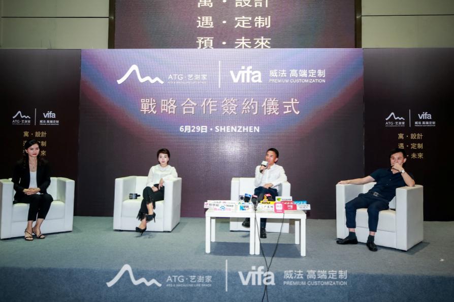6月29日下午,ATG·艺澍家 & vifa威法战略合作签约仪式在红星美凯龙深圳香蜜湖商场举行,vifa威法董事长杨炼、总经理王超及威法高端定制核心区域代理商们悉数到场,与ATG·艺澍家CEO张富丽、来自ATG亚太国际的设计师团队等就跨界合作议题展开深入的交流沟通。现场火花碰撞,在高端家装市场领域深耕多年的双方领导分享了对“高奢住宅定制”的理解,坦言行业痛点,剖析行业趋势,并就当前高奢定制市场发展的现状以及问题展开全面探讨。