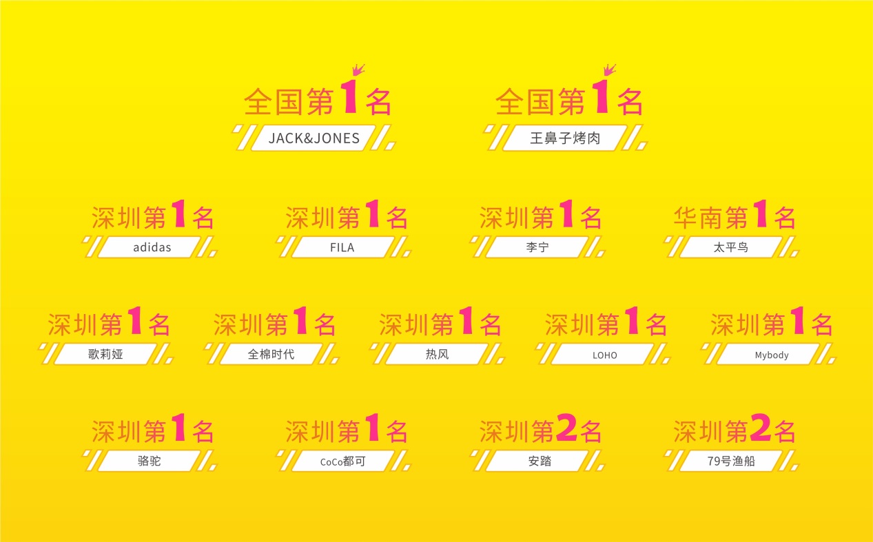 开业期间,壹方天地B区与已开业的A区、E区联动,举办了一系列活动,获得开业活动三天客流量突破69.3万人次,销售额超5000万的佳绩。开业期间,品牌商户的经营业绩也极为亮眼,NIKE、WESTLINK、YISHION、SANFU、79号渔船等多个品牌销售额位居深圳乃至全国前列。其中,adidas、FILA、李宁、太平鸟、歌莉娅、全棉时代、热风等品牌勇夺深圳第一,JACK&JONES和王鼻子烤肉更是获得全国第一的好成绩。