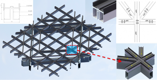 由于每一个小“盒子”的颜色都是独一无二的,需要在生产阶段为每一块零件编号,并在安装时按编号一块一块进行组合。更让项目部犯难的是,在根据原有方案进行样板安装时,“盒子”全部下垂,原因是菱形盒子突出内层幕墙1米,难以固定支撑。后经反复研究试验,决定在装盒子前,在墙上做一个外观似蜘蛛网的控制体系,为每个菱形盒子准确定位,将安装精度控制在毫米级。
