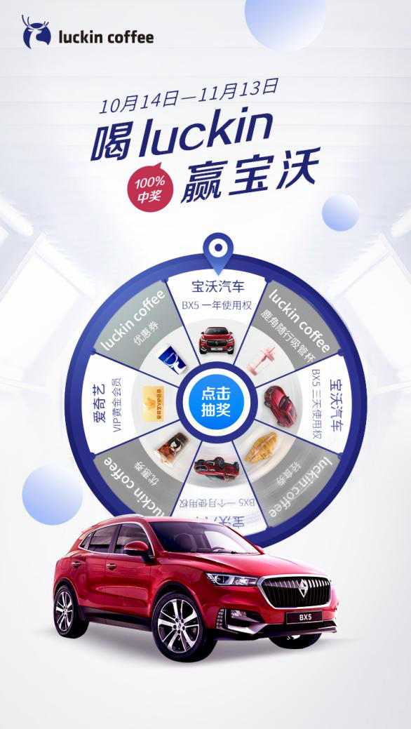 瑞幸咖啡携手宝沃汽车推出“喝luckin赢宝沃”活动