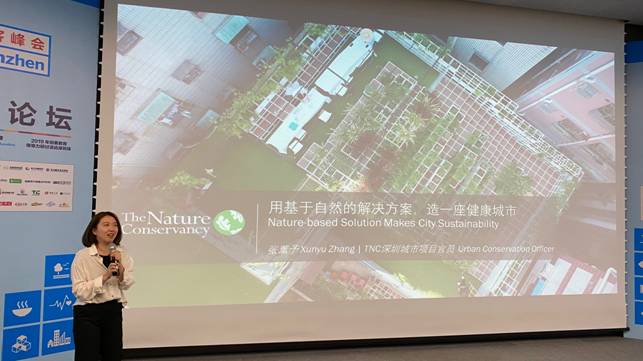 大自然保护协会深圳项目官员张薰予在高峰论坛现场分享海绵城市项目