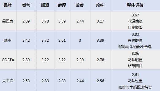 对于后起之秀瑞幸的咖啡口感和品质,20位咖啡达人是比较满意的。特别是瑞幸的拿铁咖啡,在香气、醇厚、苦度和余味等多个维度亮点突出,满足了大部分人的咖啡口味。经过四轮“盲喝”,咖啡达人认为,瑞幸在香气、醇厚、苦度和余味四个方面均获得较高得分,它的香味醇厚,咖啡与牛奶配比合适;星巴克味道偏淡,仅在口感顺滑方面评价最优;COSTA奶味明显,略带回甘,排位第三;太平洋奶味过重,咖啡与牛奶配比稍欠。
