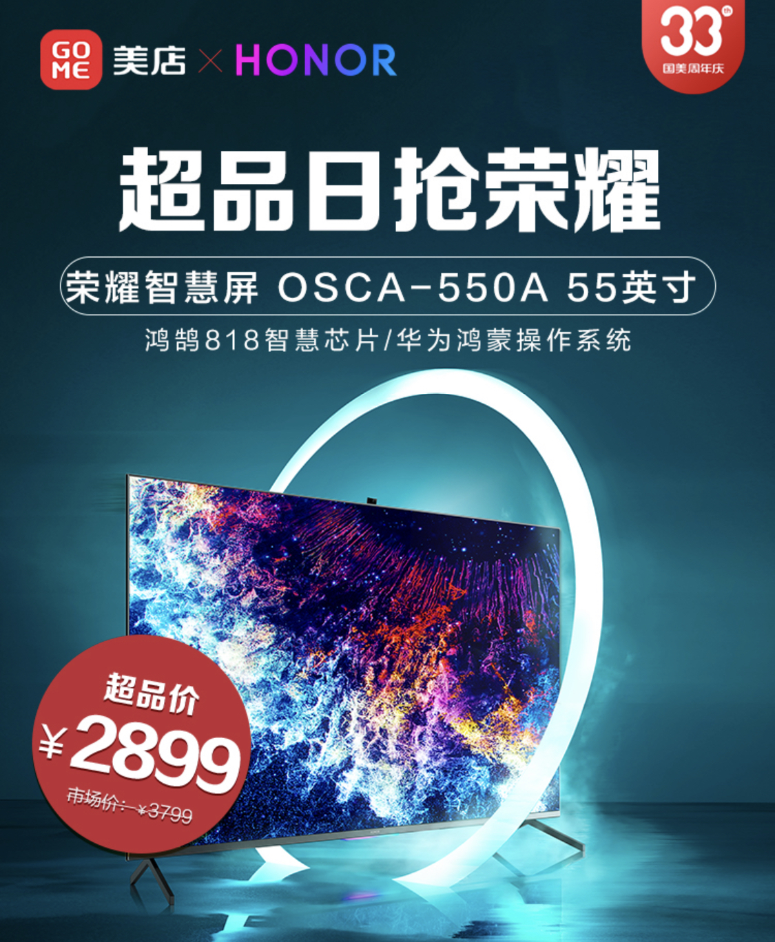 除荣耀手机外,荣耀今年全新推出的荣耀55英寸智慧屏在本次超级品牌日期间直降900元,仅售2899,成为历史新低价。活动截止至12月15日,买荣耀产品就趁现在。