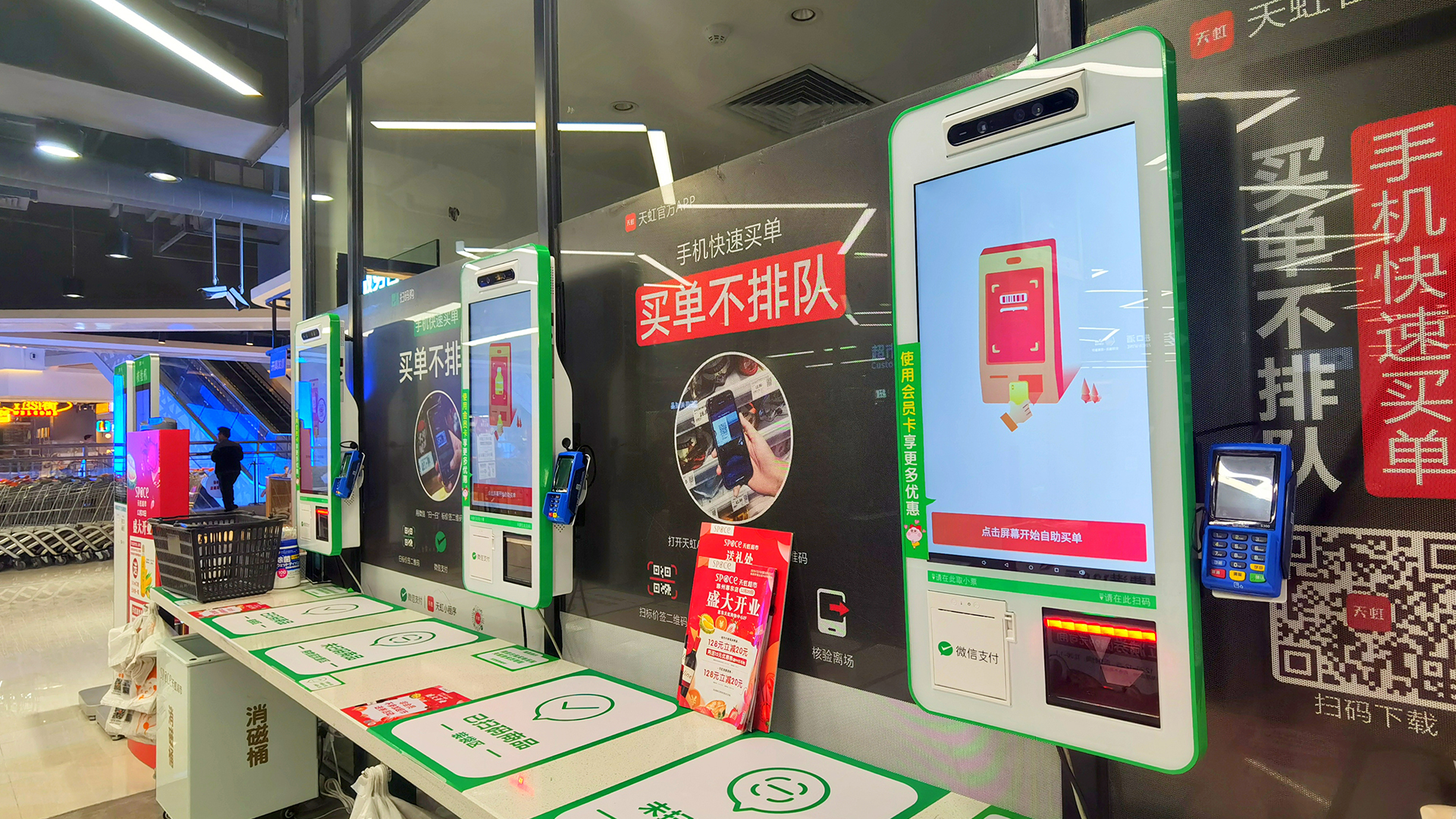 科技让超市购物更轻松,刷脸就可以买单,还可以通过天虹App和微信小程序,免排队扫码自助买单;宅在家也可享受“天虹到家”2小时内送货服务;机器人导购员随时为您服务。多项智慧零售技术在这里落地,给到顾客更新奇、更智能的体验。