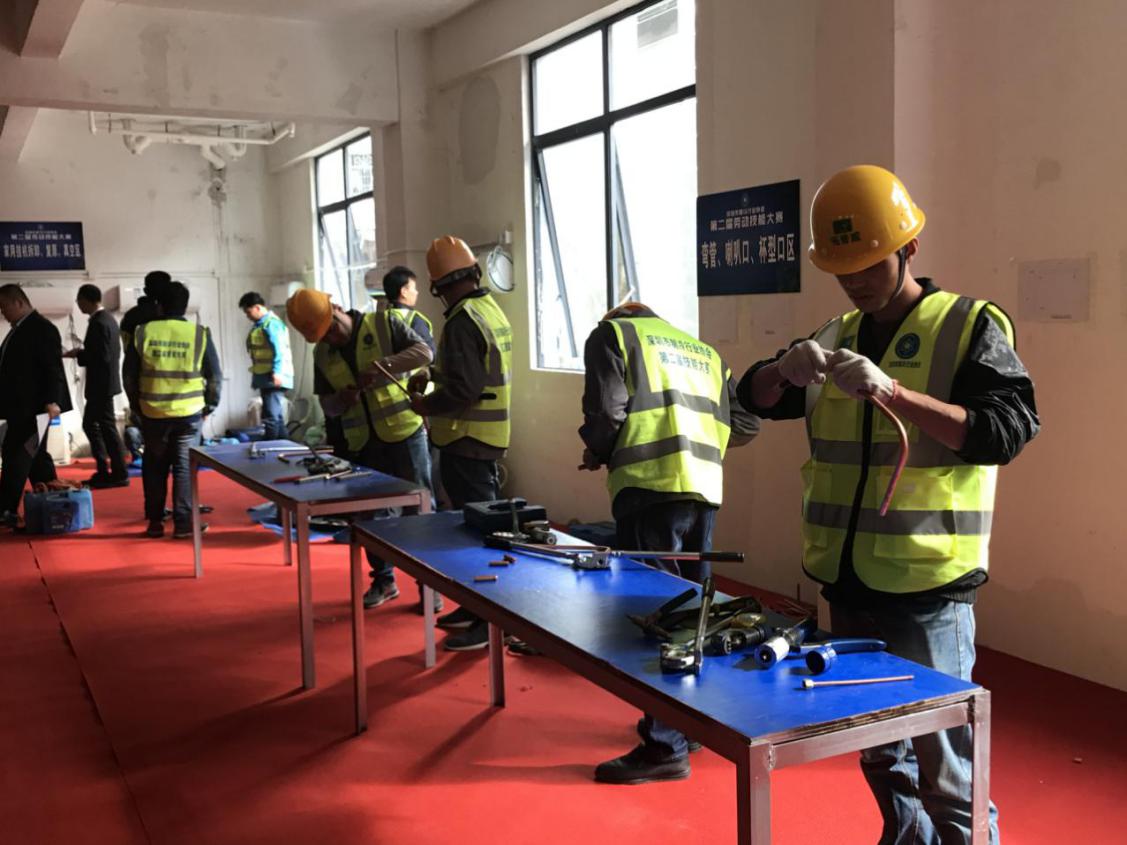 本次比赛有近200名安装维修技师参与,本次比赛分家用空调组与商用空调组两大类,主要竞赛项目有:安全施工、安装工艺、铜管焊接、分体机拆解、复原及 R410a抽真空、一拖三多联机安装等五大类同场进行技艺大 PK。评委团组成有深职院黎宏教授、格力售后负责邓超、美的深圳售后负责人梁欣、海尔工贸售后负责人李传余及行业内资深工程、设计总工共17人组成。竞赛全程公平,公正,公开,最终由行业专家评委团评出家用空调组和商用空调组各前三名,共6组成员并分别对他们进行表彰。(吴艳)