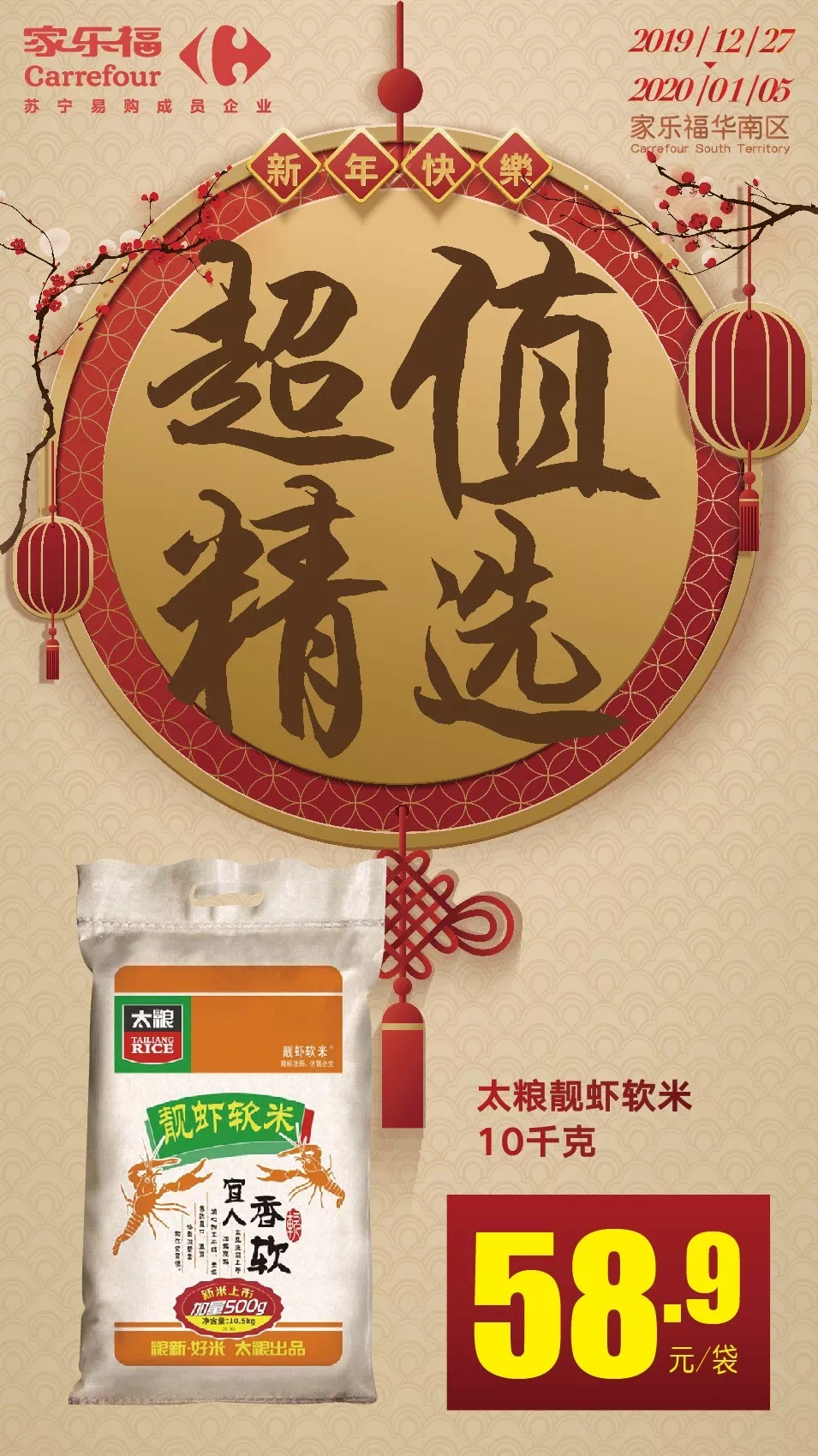 深圳新闻网2019年12月27日讯 俗话说“民以食为天”。一碗好米饭,能顶半边天。要过年了,家里总得备点好米呀!12月27日至1月5日,家乐福华南区特推太粮靓虾软米,惊爆价仅需58.9元/袋。吃货们,囤起!