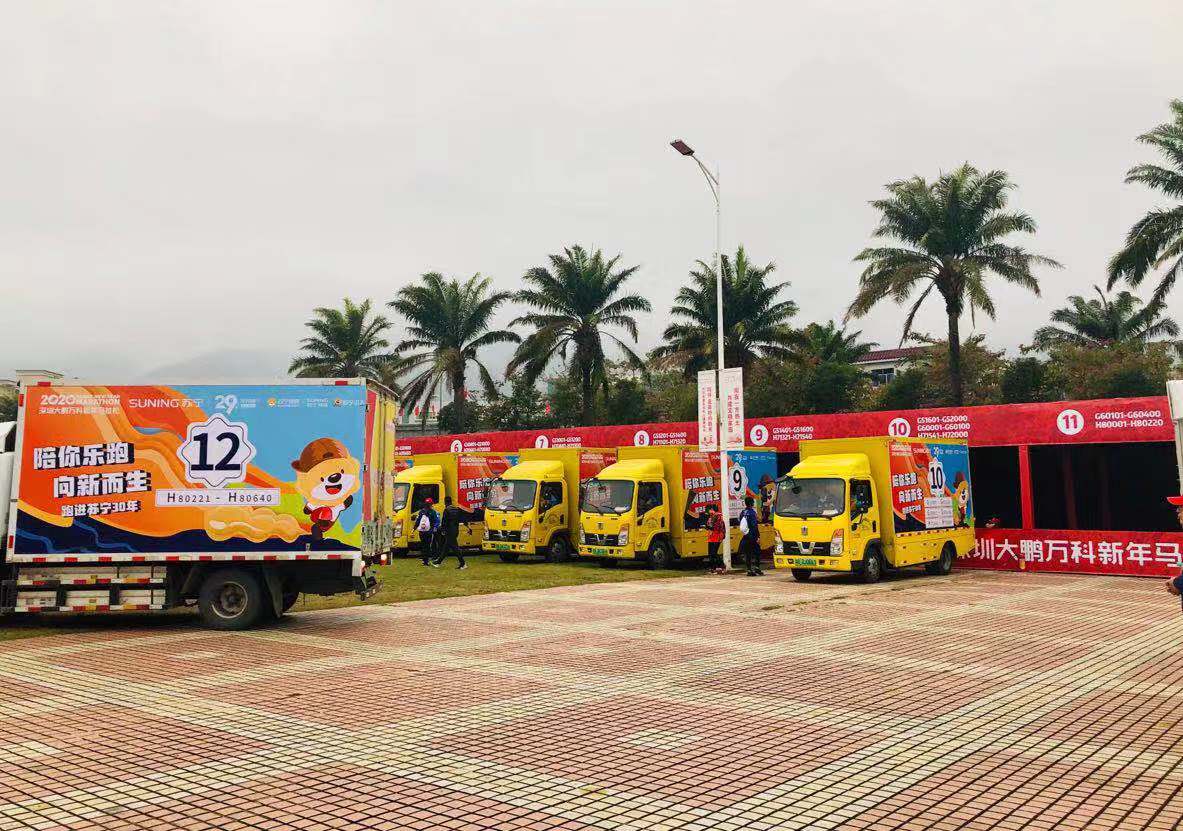 凌晨5点,天还未亮,千名跑者已经在起点处汇集,陆续进行检录,然后将包裹存储,开始了各有特色的热身运动。值得一提的是,本次提供存包车服务由苏宁物流提供,10辆黄色物流车经过“改装”,换上“新衣服”,为跑者的包裹保驾护航。原来苏宁已经进入第30年了,这次新年马拉松,苏宁作为荣耀赞助商加入,与跑友一起奔跑,陪你乐跑,向新而生!7点30分,随着起跑枪声的响起,5000名跑者浩浩荡荡地向着终点开跑了!