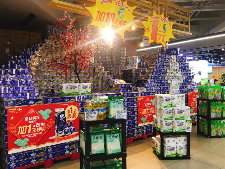 1月6日至15日,在家乐福收银线结算后,可千万别忘了超值换购哦。全场(除家电)购物满299元,加1元可换购维达经典卫生纸四层2000克装1提,零售价都要28.9元。满50元加指定金额还可换购金龙鱼葵花籽油、金稻田宫廷米、糖果盒、福康煲、甩水拖、羽丝保暖被等好物。这些神操作,一般人我不告诉他。