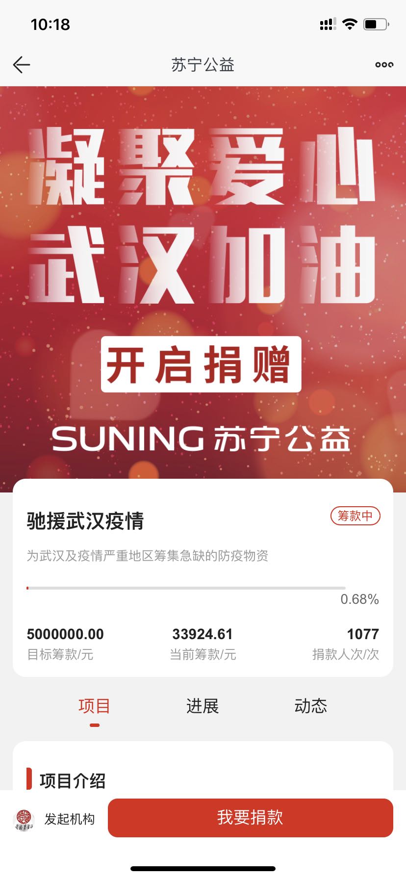 深圳新闻网2020年1月27日讯 1月26日,苏宁互联网公益平台上线“抗击新型肺炎疫情”公益项目,为网友提供爱心捐赠的新通道,进而支持疫情防控第一线的工作。