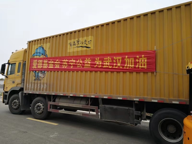 近日,苏宁已紧急调运约50吨消毒水驰援武汉地区。