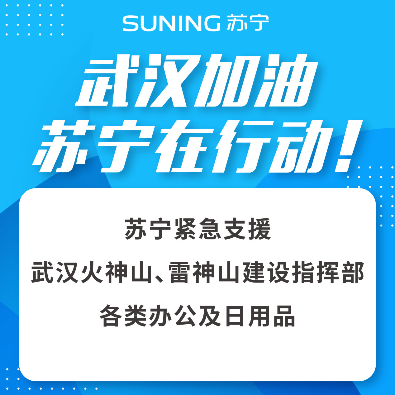 而在疫情防控一线,自春节期间肺炎疫情发酵以来,苏宁迅速行动,在武汉组建了支援团队及时响应一线需求,通过定向向武汉火神山、雷神山医院,以及武汉和周边地区的医疗、公安等机构进行捐赠,紧急支援消毒水、口罩、防护服、医用手套、电器、电脑、日用品等一系列物资,以解疫区燃眉之急。
