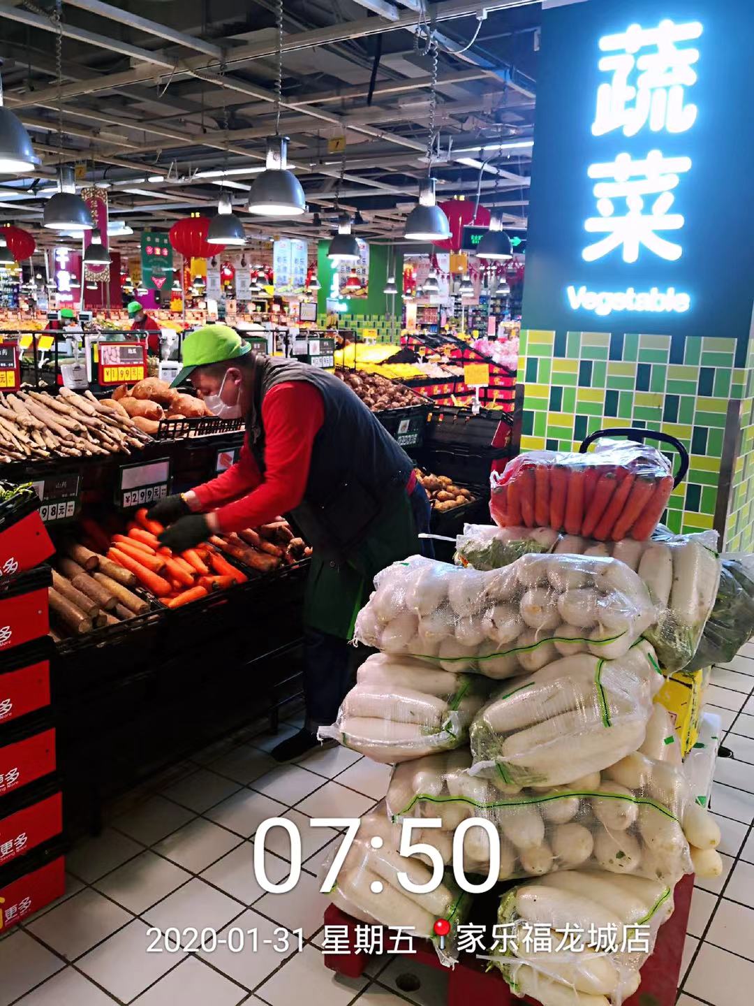 疫情当前,保障民生商品供应成为家乐福的首要任务。三万六千名家乐福人默默地坚守在各自平凡的岗位上,誓为消费者提供始终如一的高品质及高性价比商品。为保障市民的“米袋子”、“菜篮子”、“果盘子”等各项生活必需品不断档、不脱销,家乐福今年春节期间积极组织货源,加大采购力度,确保充足库存,其中部分单品的订货量更达平日的数倍。各门店亦增加补货、配货频次,安排员工及时上架、补充排面,尽力避免商品短缺,旨在最大程度保证顾客的消费需求。而随着疫情的逐步扩散,口罩、洗手液、消毒用品等商品的需求大幅上升,家乐福第一时间对库存进行全面梳理,及时下单补货,并承诺相关商品绝不涨价。1月24日至2月8日期间,家乐福全国51个城市209家门店,为保障市民的“菜蓝子”,紧急加购、及时补货,为市民累计提供蔬菜11000吨,猪肉1340吨,水果3800吨,到家业务订单量增长3.5倍。