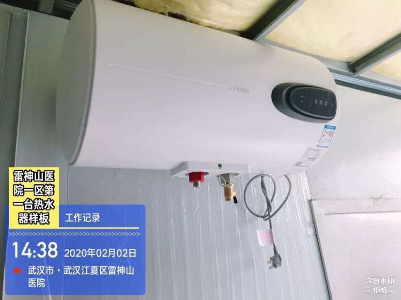 据了解,雷神山医院工地上正在24小时不间断地施工,现场每时每刻都在变化。目前,雷神山医院的部分房间正在进行内部装修,海尔突击队的队员在现场接受项目的统一指挥,2月4日,300台热水器设备按计划全部安装完成。