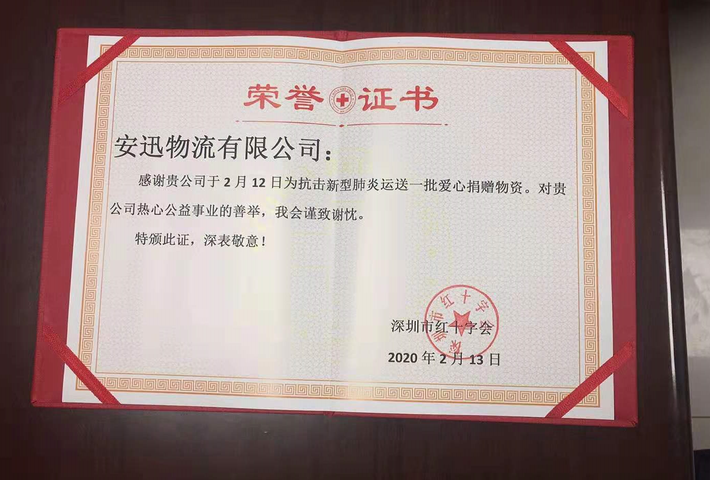 2月11日,深圳市红十字会收到爱心企业捐赠防控物资请求:50箱84消毒液及20箱PVC一次性手套,急需尽快将此批捐赠物品分配给深圳市疾控中心,用于研发人员防抗疫情需要。因红十字会无货车,经多方寻找,得知国美安迅物流开通疫情防控物资绿色通道,并联系上安迅物流深圳分公司总经理李军泽。在得知此消息后,安迅物流紧急调配深圳操作中心副经理史江波及车辆主管孙海泉在2月12日派车运送及协助,并与红十字会工作人员,到达捐赠公司并迅速接收捐赠物资,于第一时间送至深圳市疾控中心,保障了捐赠物资的及时到位。