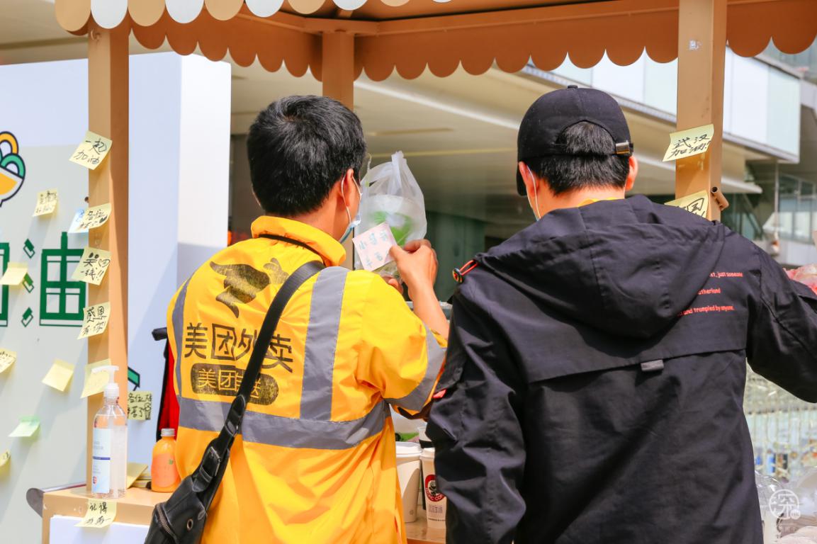 中午送餐高峰期结束后,周边上班的爱心市民得知这个活动后,也不断来悄悄“补货”。有的在便利店打包了乌冬面放在爱心餐车上;有的远程购买了薯条、水果茶并留下了贴心备注;还有的市民陆续带着“奇奇怪怪”的物品放在无人值守爱心站,在这里感受到了深圳这座城市的温暖。