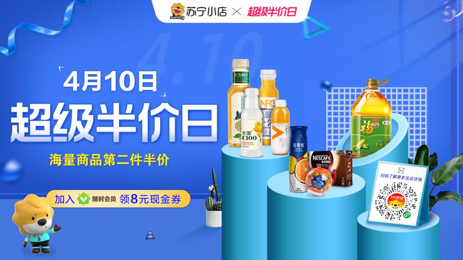 其中苏宁小店将在APP、小程序及门店三端推出第二件商品半价优惠。覆盖日配、冲调水饮、休闲零食、日用品等社区热门消费品类。消费者在家门口即可购买生活所需。