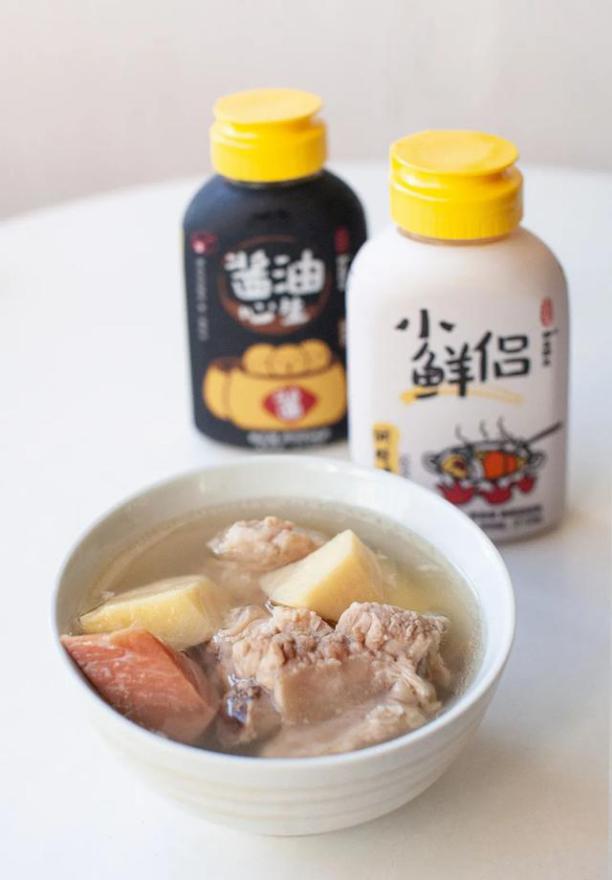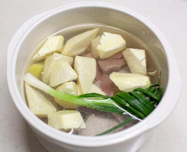2.把排骨、火腿、干贝、春笋、姜、葱放入锅中,加入小鲜侣,加入凉水,放入隔水炖锅中,炖2.4小时,即可出锅。