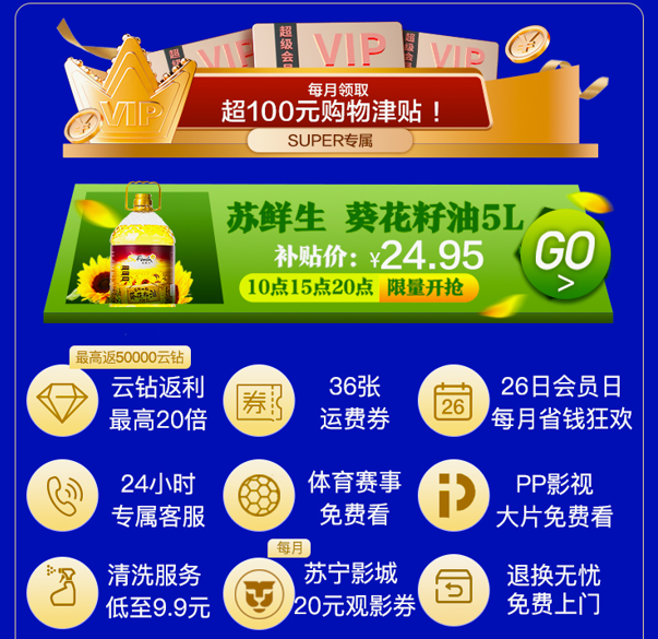 通过登陆苏宁易购APP,搜索关键词“白衣天使”,进入自动申领页面。 SUPER会员是苏宁为用户打造的专属会员体系,能够满足“白衣天使”们视频娱乐、生活购物、服务等全场景的需求。