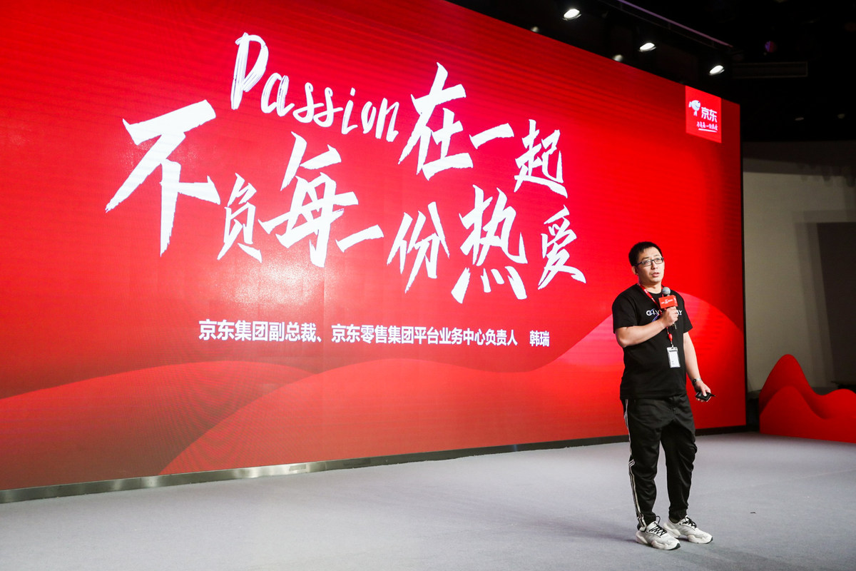 京东集团副总裁、京东零售集团平台业务中心负责人韩瑞发表演讲。