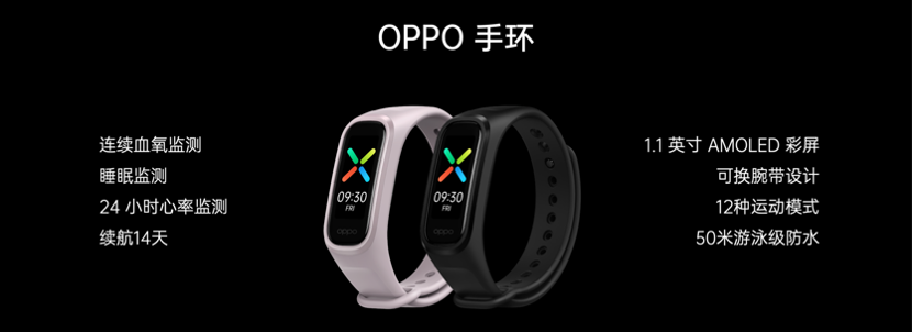 OPPO手环则主打运动健康,支持连续血氧检测、12种运动模式;OPPO手环时尚版定价249元,标准版199元。