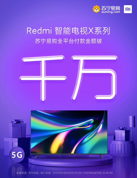 在苏宁悟空榜,各大品牌争夺激烈,新品首发引爆市场。昨日上午,红米与苏宁易购发布首发战绩:Redmi智能电视X系列开售36分钟,苏宁易购全平台付款金额破千万,火力全开!苏宁悟空榜数据显示,小米多款电视领跑单品销售额榜、单品销量榜、单品加购人数排行榜多席。