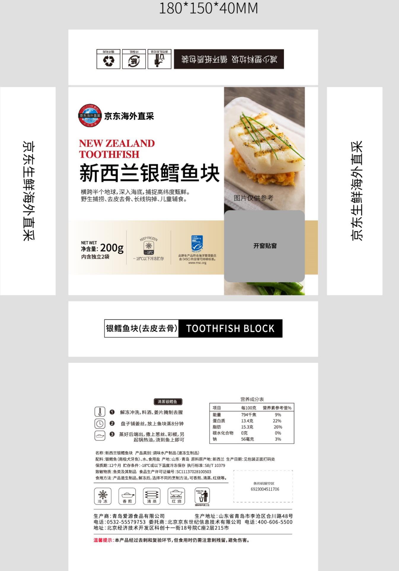 以新西兰银鳕鱼块为例,包装上带有显眼的蓝色MSC生态标识,就代表着它来自于获得认证的可持续渔业产地,同时,也表明这款鳕鱼从捕捞到加工、流通、贸易等环节都有详尽的第三方评估,相关商品信息也已经得到审验。