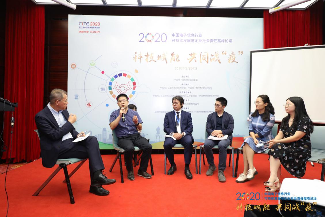 为更加全面生动地展现企业在抗击疫情的典型实践,论坛特别组织专题研讨活动, 《可持续发展经济导刊》社长兼主编于志宏主持,中兴通讯股份有限公司副总裁、无线架构总经理段向阳、索尼精密部件(惠州)有限公司董事总经理小林克彦、腾讯公益慈善基金会项目总监邓江波、富士施乐高科技(深圳)有限公司CSR部长刘美华、深圳市创新企业社会责任促进中心主任曾亚琳共同参与研讨,各位嘉宾积极分享企业的优秀实践,交流对科技抗疫的观点与看法,为电子信息行业的责任价值创造与创新带来思考与提供借鉴。