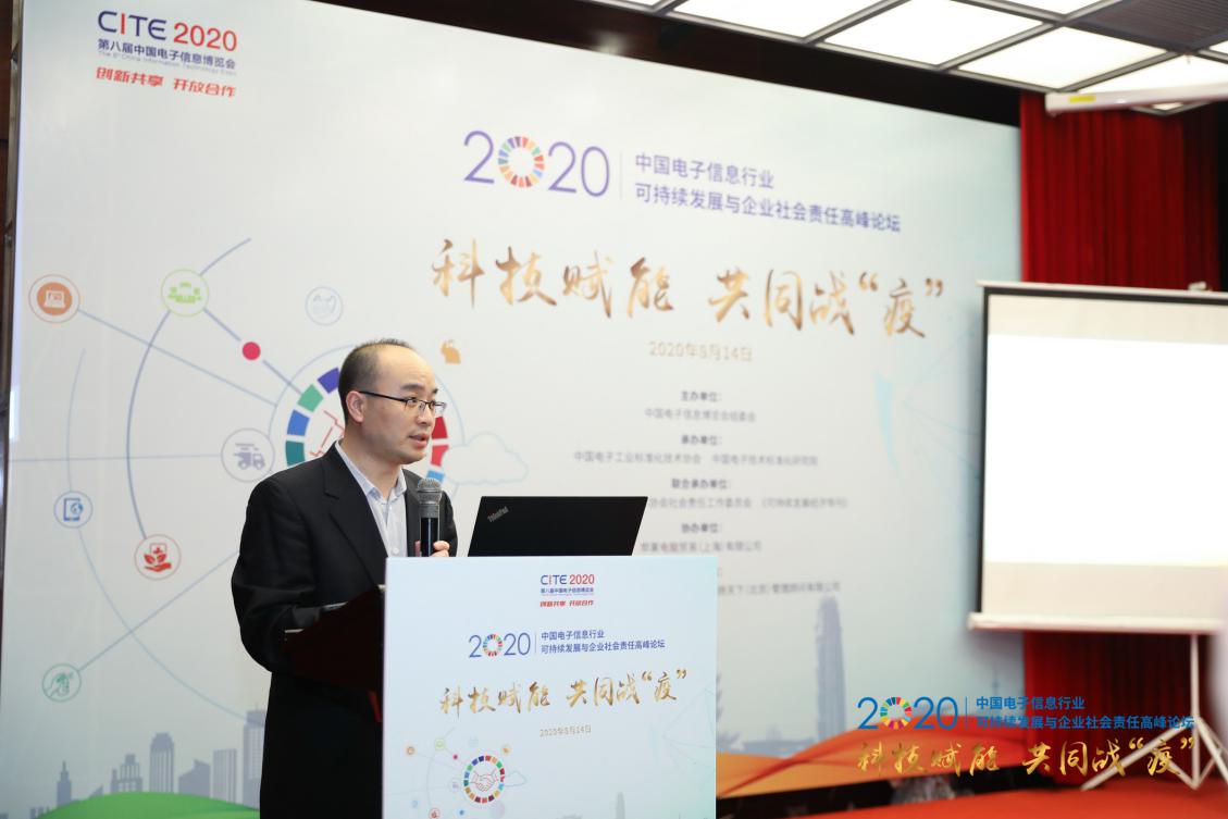 工业和信息化部产业政策与法规司综合处处长徐华在致辞中表示:面对新型冠状病毒肺炎疫情的汹涌来袭,电子信息行业企业积极承担社会责任,构筑起了战“疫”坚固防线,充分发挥自身专业优势,运用信息技术能力,为抗击疫情、复工复产做出了积极贡献。产业政策与法规司作为工业和信息化部负责推动企业社会责任建设的主管司局,为深入贯彻落实党中央国务院关于企业社会责任工作的要求,进一步加强新时代工业通讯业企业社会责任的建设,2020年,我们积极推进《关于推动工业通信业企业社会责任指导意见》的研究与出台,探索建立企业社会责任意识和能力提升机制,推动企业社会责任培训和宣传交流工作。同时,通过搭建企业社会责任公共服务平台,为宣传企业社会责任政策和为企业开展社会责任信息披露及沟通交流提供服务。