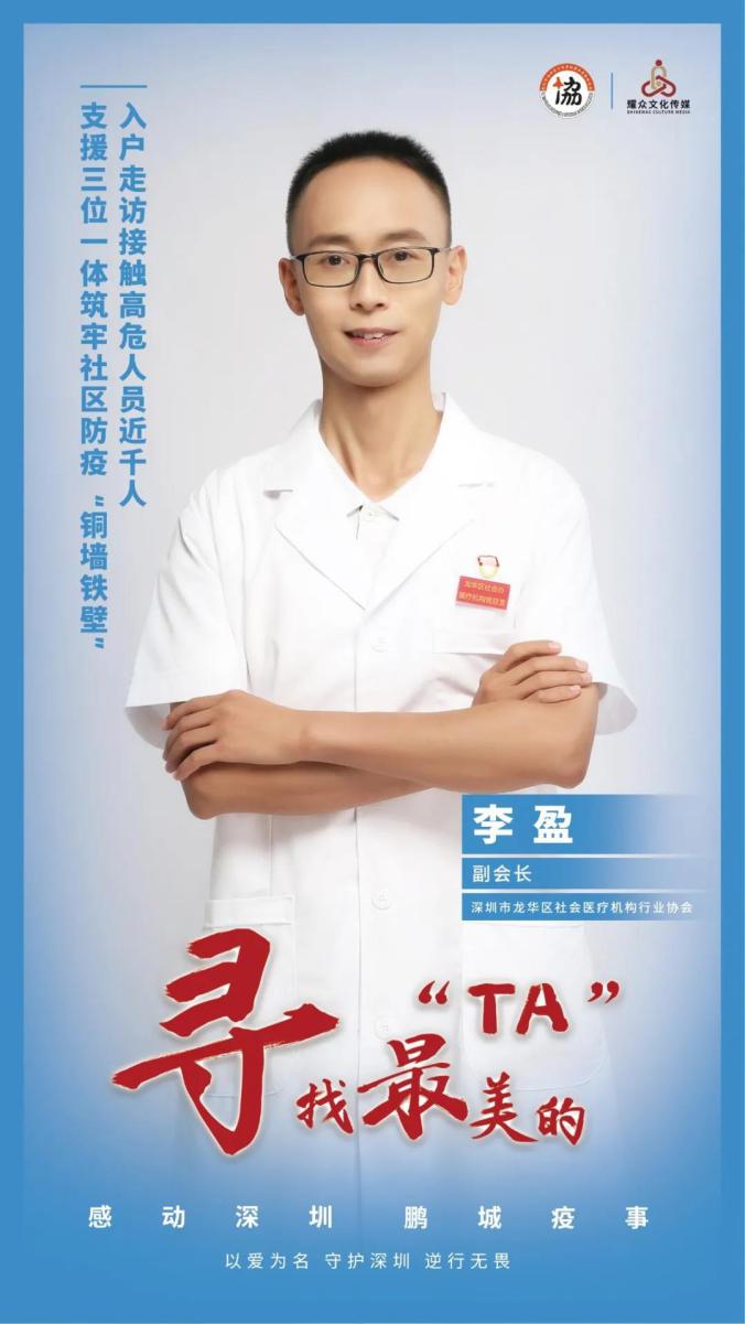 李盈是龙华区社会办医疗机构党总支委员、社会医疗机构行业协会副会长。自新冠疫情爆发后毅然签下请战书,2月初即投身于社区及社康“三位一体”疫情防控工作中,以社会基层治理网格为单位,助力全面细致排查。面对从高风险区来深人员,李盈作为医务人员直面危险,每天皆需进行首次上门面访、体温监测、健康询问、健康评估,并对疑似人员立即转运隔离等。