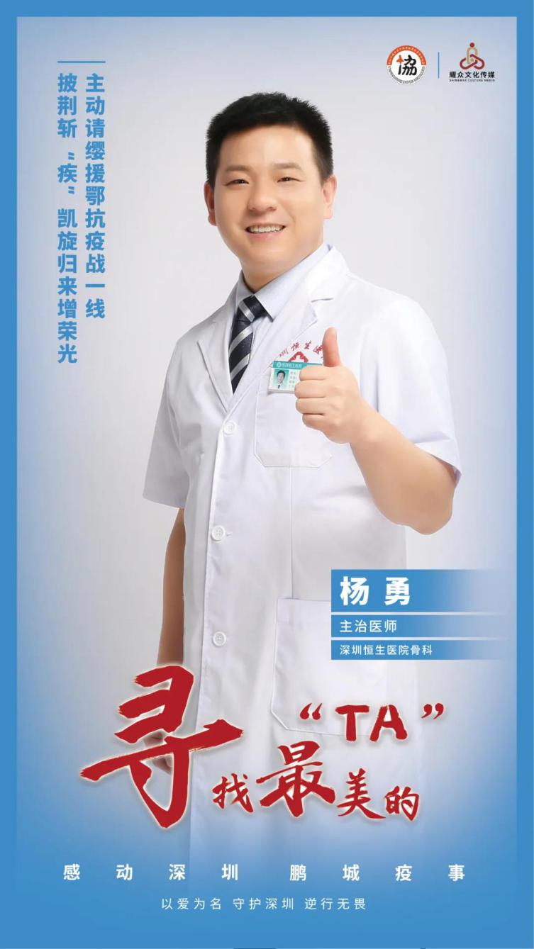 深圳恒生医院作为社会办三级综合医院,不仅被列入深圳49家设立发热门诊的医院,同时也是首家派遣医护队援鄂的社会办医院。而杨勇,即首批坚决主动请战、带队赴荆斩疾的优秀党员医生代表。