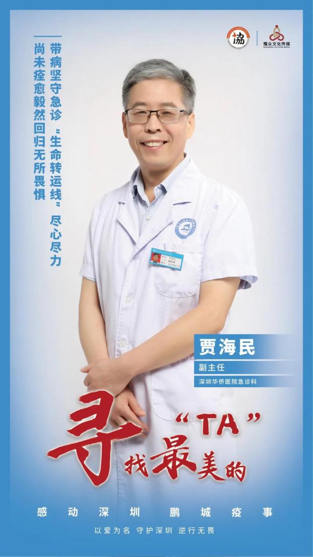 深圳华侨医院是我市社会办三级综合医院、市49个开设发热门诊的医院之一,从受领任务起即积极行动,进入临战状态。作为开设发热门诊的医院,需设置预检分诊并安排24小时值班,这里无疑是医院最危险的“主战场”。贾海民作为急诊科副主任及院前科主任,自新冠疫情爆发以来,始终坚守在防疫工作第一线,负责组织发热病人诊治、疑似新冠肺炎120接诊转运、疑似患者专家会诊等高危工作。