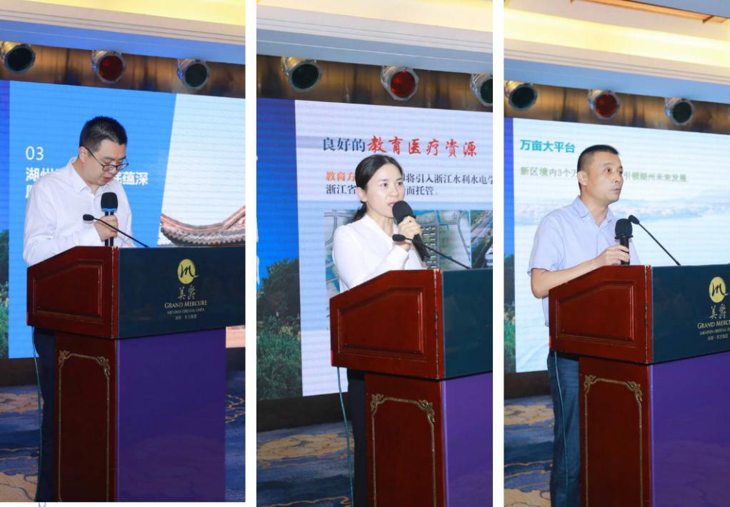 吴兴区政府办公室副主任朱江政、南浔区副区长费学梅以及南太湖新区管委会副主任王国良分别从不同角度对三区进行了强力推介,吴兴区的创新、南浔区的秀美、南太湖新区的活力,让深圳的企业家更深刻地认识了湖州,领略了湖州不同区域的发展魅力和优越的投资环境。