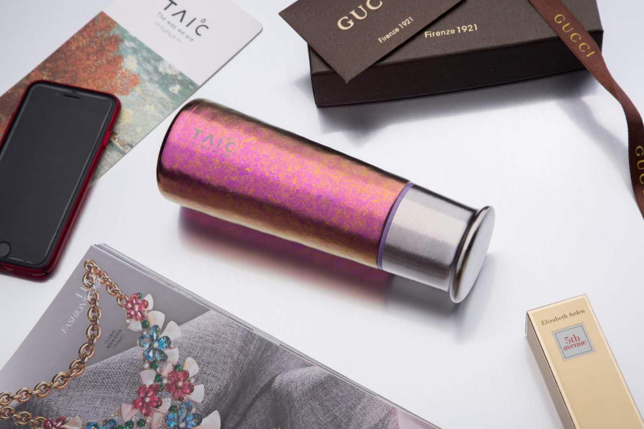 以这款纯钛T型杯为例:这款产品采用纯钛打造,纯钛具有形态稳定、不易与食品饮品产生化学反应、不易析出重金属、不易出现排斥过敏反应等优点;产品外观不使用任何喷漆材料,而是通过Ti- Anox技术让钛金属呈现出自然绚丽如宝石般的色彩,一改钛金属材料灰暗的冷峻;尽显匠心的手工打磨、坚韧轻盈的材料特性、优良的保温保冷效果……每处细节都在彰显TAI℃钛度完美、坚韧、健康的设计理念。