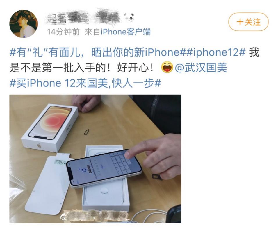 还有“果粉”在收到国美闪电配送的iPhone12后,第一时间就微博晒新机:“我是不是第一批入手的!好开心!”还配上了一个张iPhone12拍出的新鲜出炉的大片。马上就有跟帖说:“你就是微博今日最佳最靓的仔!”。