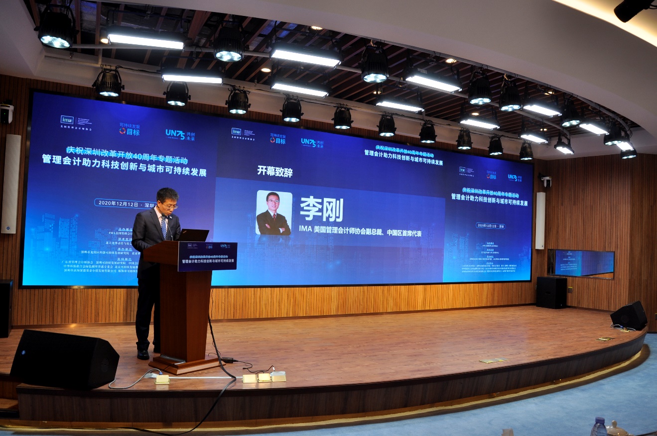 本次研讨会邀请了深圳可持续发展研究院执行院长张亚龙担任主持人,美国管理会计师协会(IMA)副总裁、中国区首席代表李刚为研讨会的开幕致辞,他表示,“今年是深圳特区建立40周年,深圳在改革、创新和可持续发展方面的实践,为我国经济社会高质量、可持续发展提供了良好的先锋模范作用。在当前国内国际双循环相互促进的新发展格局下,我们相聚在改革开放的前沿阵地深圳市,共同探讨如何运用管理会计进一步促进科技创新和城市可持续发展具有积极的意义。”