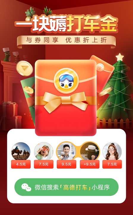本次“1块出发日”,高德打车将在微信小程序推出“一块薅打车金”活动。用户进入高德打车微信小程序,将获得1个随机金额打车金礼包,用户将礼包分享给好友,好友点击即可获得打车金。礼包内所有打车金均被好友领取完毕后,分享人将随机获得与其中一位好友等额的打车金奖励。每个用户可多次参与活动,活动期内预计最高可得500元打车金。