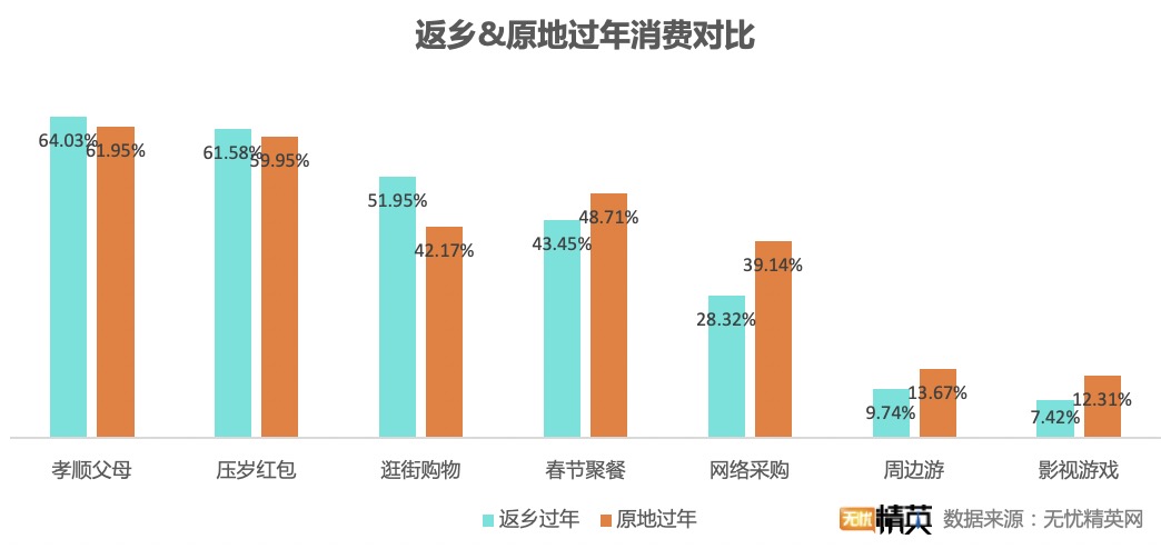 多数上班族在这次原地过年中,享受了一把悠闲的宅生活,少了跑亲戚拜年的习俗,在亲友相聚基础上延伸的逛街购物娱乐相比往年低了9个百分点。但是数据表示,原地过年大幅推动了居家服务消费的增长,年货礼盒、休闲食品、换季服装、健身器材等产品销售火热,这与原地过年的上班族网络消费支出比往年高出了约10个百分点不谋而合。
