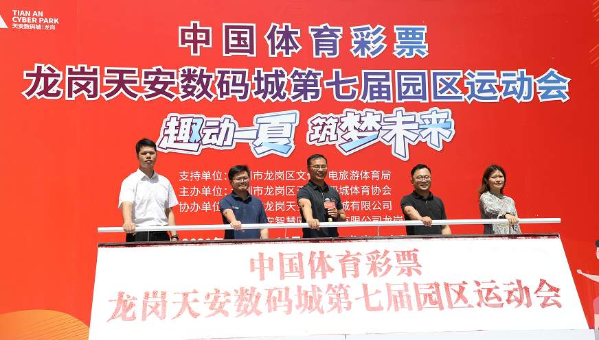 本届运动会以“趣动一夏筑梦未来”为主题,由深圳市龙岗区文化广电旅游体育局支持,深圳市龙岗区天安数码城体育协会主办,深圳市龙岗天安数码新城有限公司、深圳天安智慧园区运营有限公司龙岗分公司协办。深圳市龙岗区文化广电旅游体育局副局长李震、龙岗天安数码城副总经理陈文鑫、龙岗区文化广电旅游体育局体育事业促进科副科长任翠华、天安智慧园区运营有限公司总经理助理龙岗分公司总经理梁义荣、龙岗天安数码城产业事业部总监白丽等领导嘉宾为本届运动会推杆启动开幕。