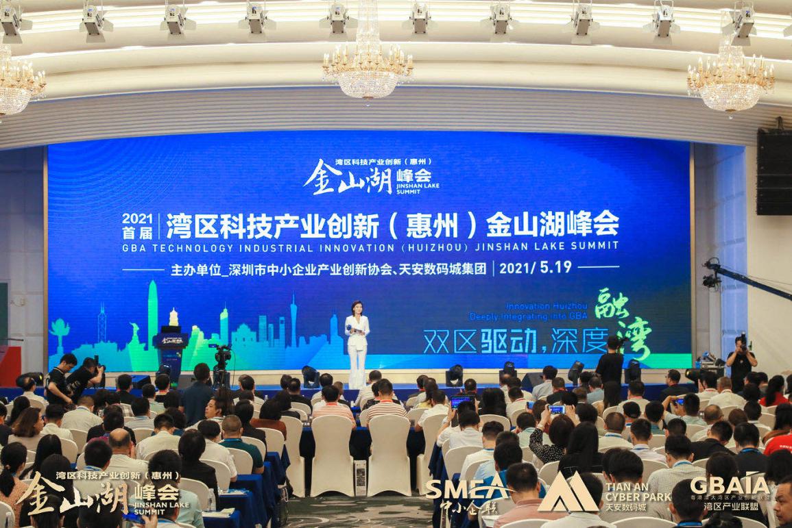 昨日,由深圳市中小企业产业创新协会、天安数码城集团联合主办的“双区驱动·深度融湾”2021首届湾区科技产业创新(惠州)金山湖峰会在惠州市惠城区康帝国际酒店如期举行。本次峰会得到了惠州市惠城区人民政府、惠州市工业和信息化局、惠州市商务局、惠州市科学技术局、惠州市科学技术协会、香港贸易发展局、澳门贸易投资促进局、香港生产力促进局深圳创新及技术中心的大力支持。出席本届峰会的嘉宾包含政府部门领导、上市公司董事长、大湾区各行业领域龙头企业负责人、专家学者、专业听众等超500余人,一同见证了“深莞惠科技协作与创新服务合作平台”签约以及《湾区产业联盟(惠州)科技创新展示中心》的正式启动。