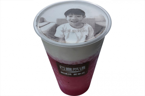 建议由孩子把自己或家人的照片加上一句话祝愿的话,作成图片先保存到手机里。到店后,在云客茶语小程序上传打印到奶茶上。整个制作过程约10分钟。